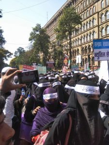 ممبئی : آج ممبئی کے آزاد میدان میں مسلم خواتین بہت بڑی تعداد میں جمع ہوئیں اور مسلم عورتوں کے تعلق سے "مسلم ویمن پروٹیکشن آف رائٹس آن میرج بل 2017″کے خلاف پُر زور احتجاج درج کروایا جو بل  لو سبھا سے پاس ہوچکا ہے اور اب اس وقت راجیہ سبھا میں ہے۔ اس عظیم الشان ریلی کا انعقاد آل انڈیا مسلم پرسنل لا بورڈ کی آواز اور تحریک پربورڈکی ممبئی ویمن ونگ نے کیا تھا۔