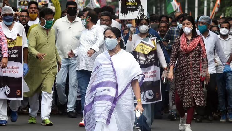 اترپردیش کے ہاتھرس میں مبینہ ”اجتماعی عصمت دری“کے خلاف ممتا بنرجی کی قیادت میں ترنمول کانگریس نے دو کلو میٹر طویل لانگ مارچ کیا۔ برلا پلاٹینیم سے شروع ہوکر میو روڈ پر واقع گاندھی مجسمہ کے پاس یہ مارچ ختم ہوا۔ ممتا بنرجی نے اس استدلال کے ساتھ کہ ”کووڈ-19“سے کہیں بڑی بیماری بی جے پی ہے۔