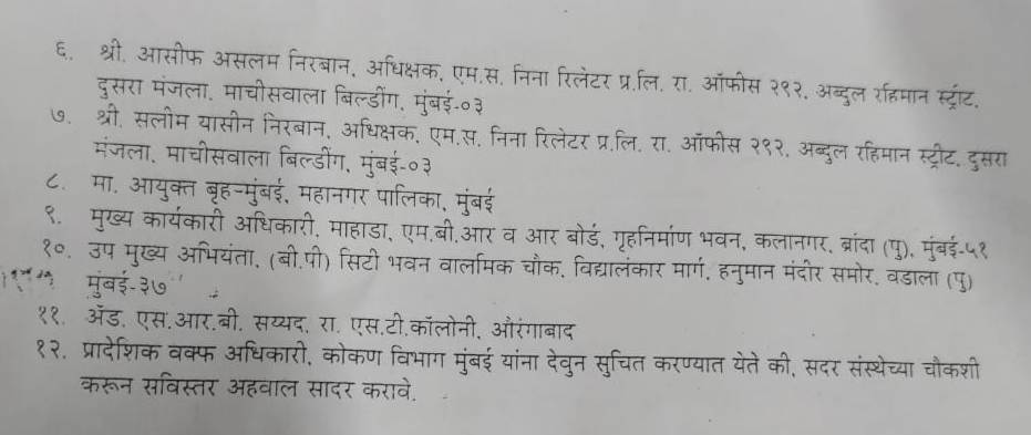 ورلڈ اردو نیوز کے ہاتھ لگے دستاویزوں سے اس بات کا انکشاف ہوا ہے کہ کنسٹرکشن کمپنی نے وقف بورڈ سے این او سی حاصل کرنے کے بعد ہی اس ملکیت کو خریدا ہے۔ وقف رکن خالد بابو قریشی کا کہنا ہے کہ ممبئی میں ١٢٠٠ سے زائد وقف بورڈ کی فرضی این او سی بیلدار وقف کی ملکیت پر قبضہ جما رہے ہیں۔ اگر اس کمپنی کے پاس این او سی ہے تو وقف بورڈ نوٹس کیوں جاری کرتا۔ اسلئے یہ بہت ہی اہم معاملہ ہے کہ اس ملکیت کو کیسے فروخت کیا گیا اور یہ این او سی کہاں سے جاری کی گئی ؟ کیا یہ این او سی بھی فرضی ہے ،اسکی بھی تفتیش ہونی ضروری ہے