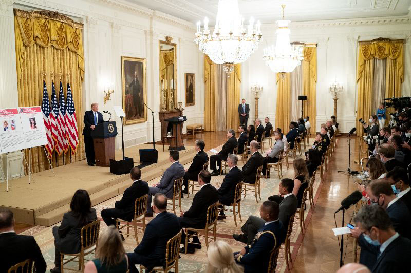 وائٹ ہاؤس میں بدھ کو بریفنگ کے دوران صدر ٹرمپ نے کہا کہ وہ پرتشدد احتجاج کو روکنے کے لیے وفاقی سیکیورٹی اہلکاروں کو متاثرہ ریاستوں میں تعینات کریں گے۔