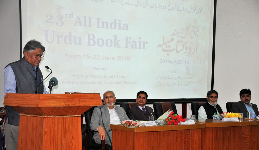 سرینگر : 9 روزہ کل ہند اردو کتاب میلے میں محبان اردو اور شائقین اردو کے ہجوم کو دیکھتے ہوئے یہ کہنا غلط نہیں ہوگا کہ کشمیر میں اردوکا مستقبل روشن اور تابناک ہے ۔ اس کتاب میلے میں کشمیر کے بیشتر کالجوں اور اسکولوں کے طالب علموں اور ان کے اساتذہ کی موجودگی کو دیکھتے ہوئے یہ کہا جاسکتا ہے کہ اردو کے اساتذہ حضرات اور طالب علم اردو کی ترقی و ترویج کے تئیں بے حد سنجیدہ اور بیدار ہیں ۔ یہاں کے اردو اساتذہ کی رہنمائی میں طالب علموں میں کتابوں کے تئیں بیش بہا ذوق و شوق پیدا ہوگا ۔ یہ باتیں کشمیر یونیورسٹی میں قومی کونسل برائے فروغ اردو زبان کی جانب سے گذشتہ 9 دنوں سے لگائے گئے کل ہند اردو کتاب میلے کی اختتامی تقریب سے خطاب کرتے ہوئے قومی اردو کونسل کے ڈائرکٹر ڈاکٹر شیخ عقیل احمد نے کہیں ۔