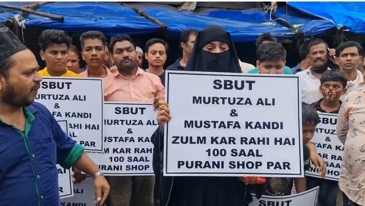 صبح سویرے بی ایم سی اور پولس کی فوج یہاں پہنچی اور غیر قانونی طریقے سے دکانوں پر بلڈوزر چلا کر انیں زمین بوس کردیا ۔ اس کے بعد مقامی مسلمانوں میں ایس بی یو ٹی کیخلاف غم و غصہ کی لہر دوڑ گئی ۔ لوگوں نے ایس بی یو ٹی کے دو لوگوں کی غنڈہ گردی کیخلاف نعرہ بازی کی اور اس طرح اپنا احتجاج درج کیا ۔ احتجاجیوں نے جن لوگوں کیخلاف بینر اٹھارکھے تھے وہ مرتضیٰ علمدار عرف مرتضیٰ راجکوٹ والا اور مسطفیٰ کانڈی ہے جو مرتضیٰ علمدار نام کی کنسٹرکشن کمپنی کے مالکین ہیں ۔