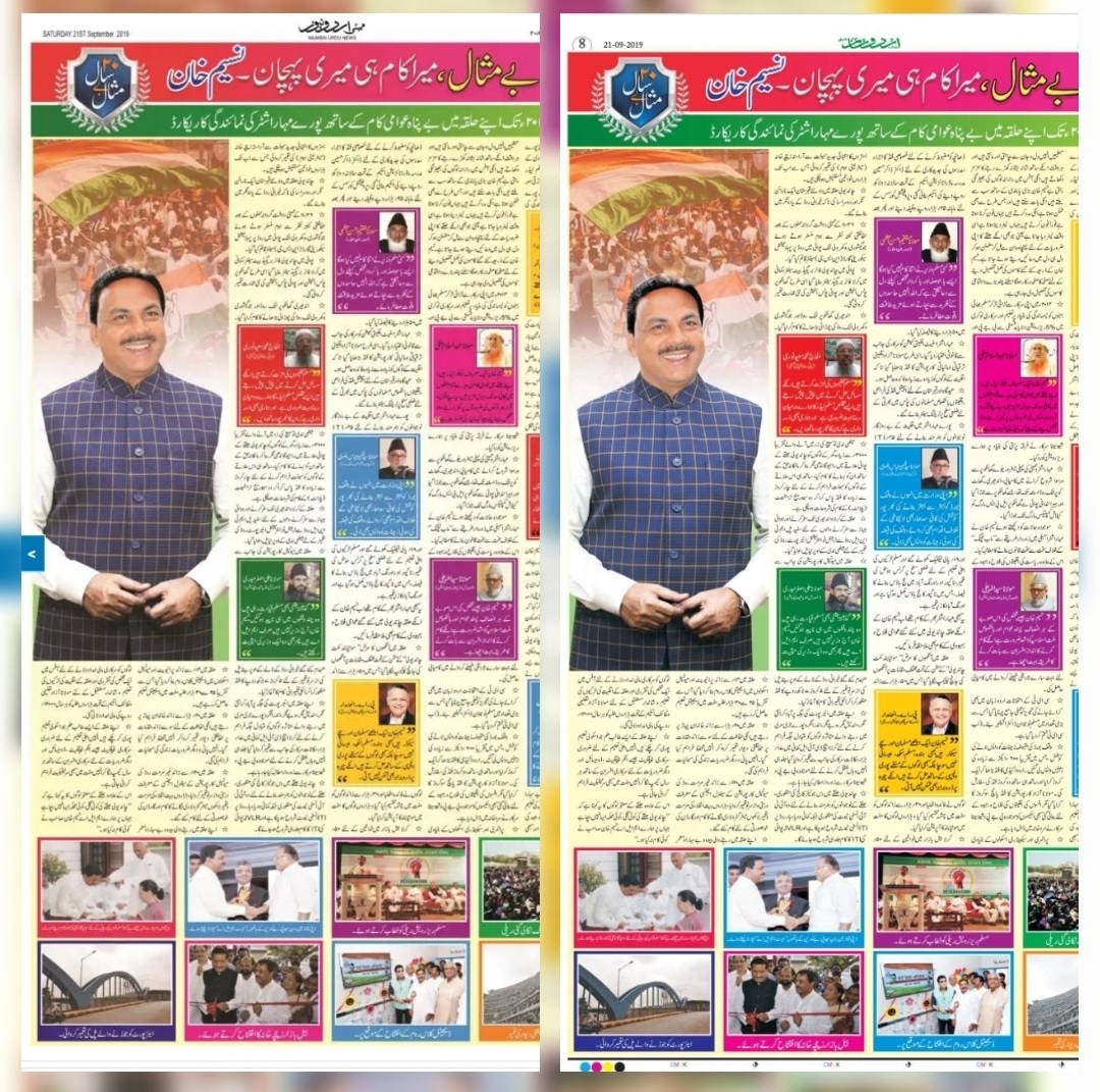 نسیم خان کی کل کی یہ پیڈ نیوز دیکھنے کے لائق ہے ۔ لیکن یہ دونوں الگ الگ اخباروں مٰں ہے ایک ممبئی اردو نیوز اور دوسرا اردو ٹائمز ۔ تحیر خیز ی بھی ہے کہ ایسے علمائے دین بھی اس میں شامل ہیں جو کبھی کسی کی تعریفوں کے قصیدے نہیں پڑھتے یا کسی سیاسی پارٹی کی طرفداری کرتے آجتک نظر نہیں آئے لیکن جس دن انتخابی ضابطہ اخلاق نافذ ہوا اسی دن وہ سارے لوگ عارف نسیم خان کی چاپلوسی کرتے نظر آئے ۔
