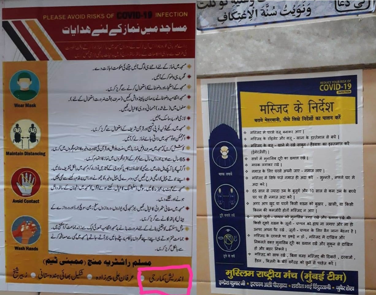 دو سال قبل اس تنظیم نے رمضان المبارک میں افطار پارٹی کا اہتمام کرکے مسلمانوں کو اپنے جا ل میں پھانسنے کی کوشش کی تھی ، مگر مسلمانوں نے دانشمندی کا ثبوت دیتے ہوئے اس کا بائیکاٹ کیا تھا ،اب کرونا کی آڑ میں اس نے اپنے پنجے پھر نکال لئے ہیں ۔ ممبئی کی ایک مسجد میں ’’کرونا سے بچنے کی احتیاطی تدبیر‘‘ نام کا ایک پوسٹر چسپاں ہے ، جس کے آخر میں نہ صرف ’’مسلم راشٹر یہ منچ‘‘ ممبئی ٹیم کا ہی نام لکھا ہوا تھا بلکہ اندریش کمار کا نام صاف طور پر پہلے نمبر پر تحریر ہے ، اندریش کمار کا نام ہونے کے باوجود اس پوسٹر کو مسجد میں چسپاں کرنے کی اجازت کیسے دی گئی ؟
