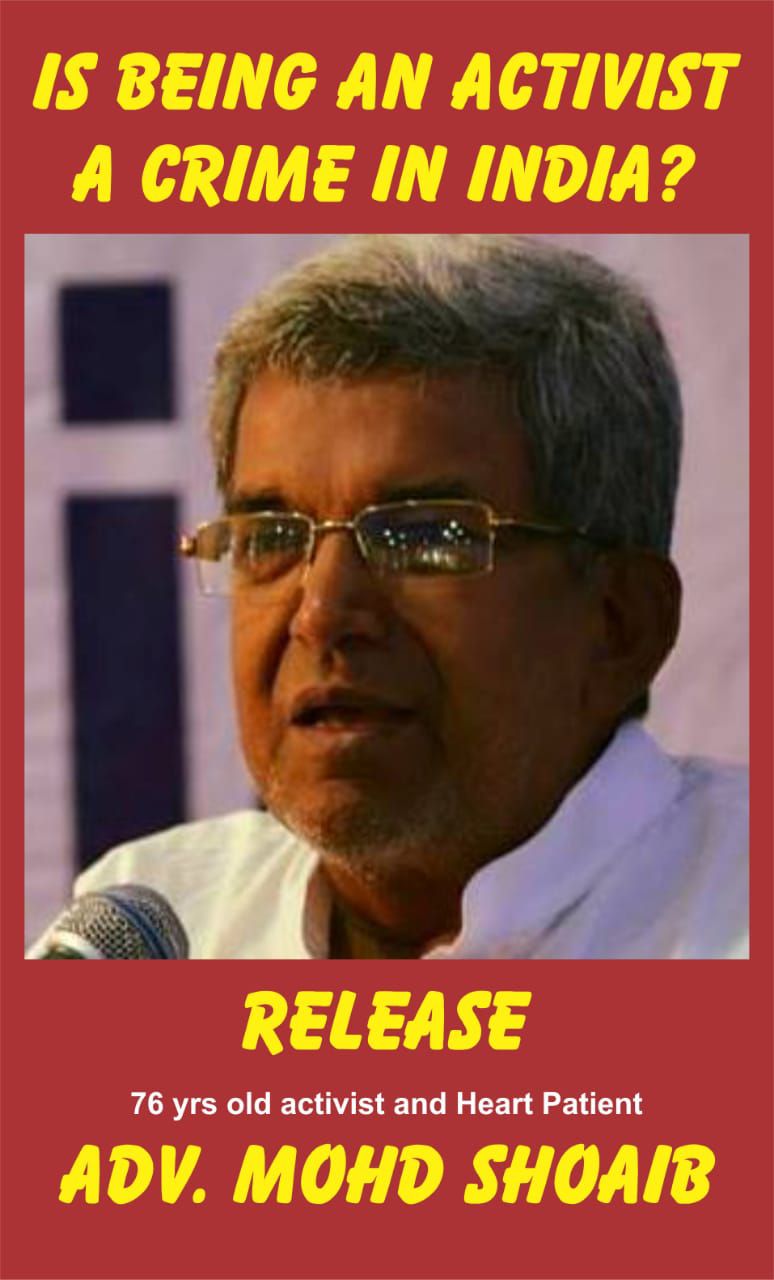 رہائی منچ صدر ایڈووکیٹ محمد شعیب کو لکھنو پولس نے غیر دستوری شہریت ترمیم قانون کیخلاف احتجاجی مظاہرہ کا اعلان کرنے کے الزام میں پہلے ۱۸ ؍ دسمبر ۲۰۱۹ سے انہیں گھر میں نظر بند رکھا اور ۱۹ ؍ دسمبر کی شب بارہ بجے کے قریب گفتگو کرنے کے بہانے تھانے بلاکر گرفتار کرلیا گیا ۔