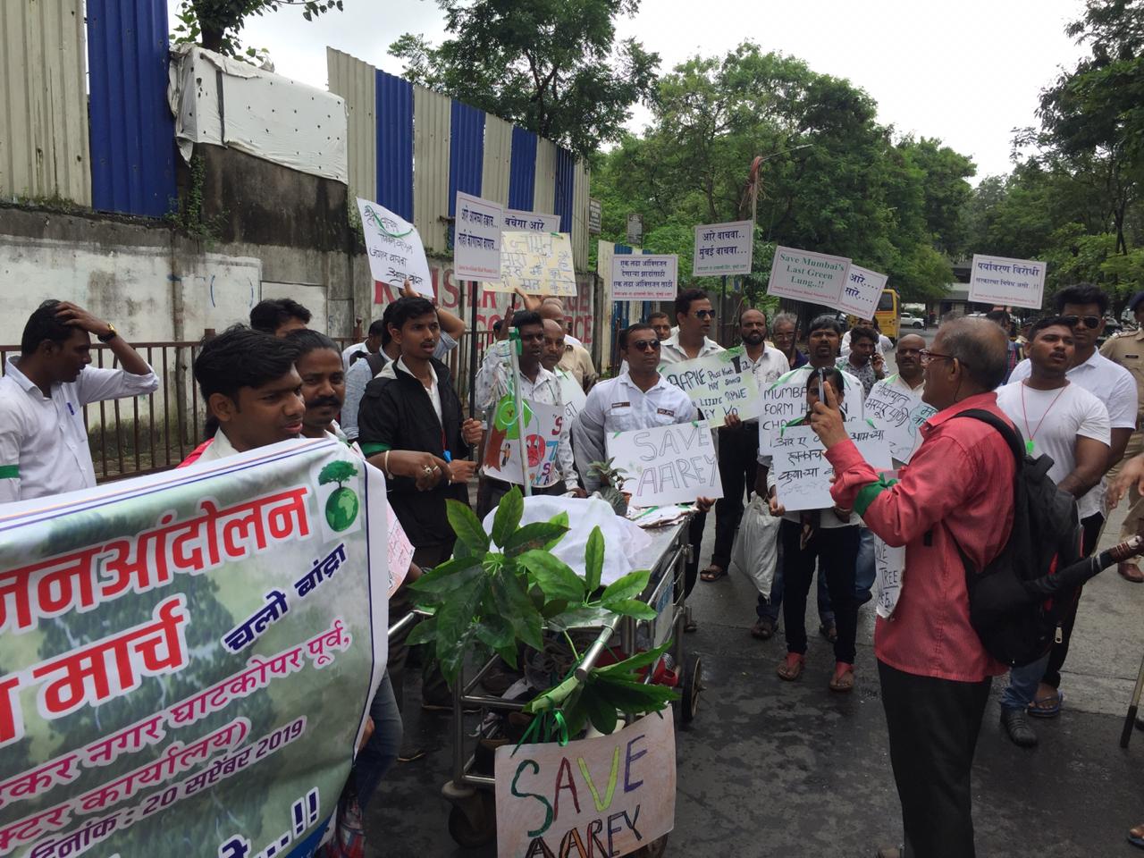 ماتا رما بائی امبیڈکر نگر یوتھ فیڈریشن کے بینر تلے تقریبا درجن بھر تنظیموں اور ان کے رضا کاروں نے شرکت کی ۔ آج کے اس احتجاجی مارچ میں دوسری تنظیموں کے ساتھ ہی موومنٹ فار پیس اینڈ جسٹس نے بھی شرکت ۔ مذکورہ تنظیم کے بینر تلے رمابائی چوک سے پیدل مارچ کرتے ہوئے کلیکٹر آفس پہچنے جہاں انہوں نے کلیکٹر کو اپنے تحفظات سے آگاہ کیا ۔ انہوں نے اپنی جانب سے درختوں کو بچانے کی تحریک کی سنجیدگی کے مد نظر کلیکٹر کو یادداشت کے ساتھ ہی گملہ بھی پیش کیا ۔ تحریک میں جماعت اسلامی ممبئی کے مقامی ارکان نے بھی شرکت ۔