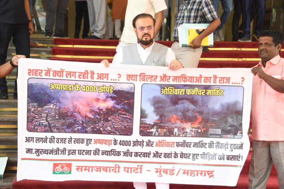 اس سے قبل سماج وادی پارٹی صدر اور ایم ایل اے ابو عاصم اعظمی نے مہاراشٹراسمبلی کے ایوان میں ممبئی کی ایک بڑی فرنیچر مارکیٹ اور کئی جھونپڑیوں کی آتشزدگی کا ذکر کرتے ہوئے مطالبہ کیا کہ ان متاثرین کو مالی امداد دی جائے اور آتشزدگی کی اعلیٰ سطحی تحقیقات کروائی جائے تاکہ پتہ چلے کہ ان واقعات میں بلڈر لابی تو ملوث نہیں ہے ۔تاکہ ایسی کچی بستیوں کی جگہ جو آتشزدگی سے متاثر کرکے تعمیراتی کام کے لیے اس کا استعمال کیا جاسکے۔