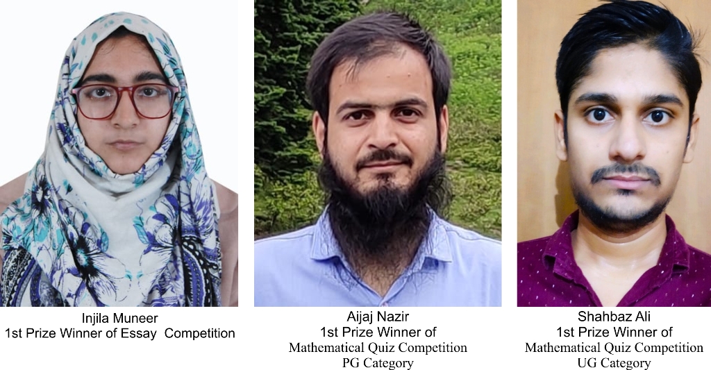 علی گڑھ : علی گڑھ مسلم یونیورسٹی (اے ایم یو) کے شعبہ ریاضی کی جانب سے قومی یومِ ریاضی پر منعقدہ ریاضی کوئز میں انڈرگریجویٹ زمرہ میں شہباز علی اور پوسٹ گریجویٹ زمرہ میں اعجاز نذیر نے اوّل مقام حاصل کیا، جب کہ مضمون نویسی مقابلہ اِنجیلا منیر نے جیتا۔