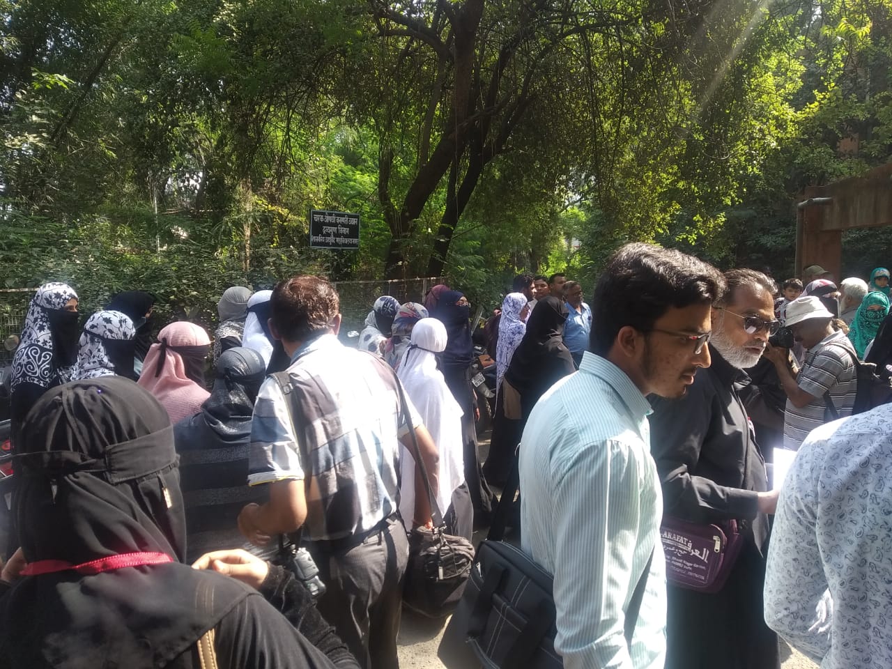 گورنمنٹ آیورویدک کالج کو سینٹر دیا گیا ہے – جب یہ مسلم طالبات پہلا پرچہ دینے کے لیے سینٹر پہنچیں تو انہیں سینٹرمیں داخلہ کے وقت دشواریوں کا سامنا کرنا پڑا۔