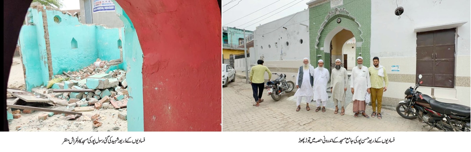 اس کے بعد وفد نے قریبی موضع رسولپور تحصیل ہوڈل ضلع پلوں کی دوسری مسجدکا سروے کیا،جس کو بہت بھاری نقصان پہنچایا گیا تھا۔مسجد کے حجرہ کو آگ کے حوالہ کر دیا گیا، مسجد کی اندرونی و بیرونی دیواروں کو توڑدیا گیا اور مذہبی کتابوں کی بھی توہین کی گئی تھی۔وفد نے پایا کہ اس گاؤں میں کوئی مسلم گھر نہیں ہے، حالات کے پیش نظر اس کی مرمت کا کام فوری طور پر شروع نہیں ہو سکتا تھا۔ان شاء اللہ حالات صحیح ہوتے ہی مرمت کا کام شروع کردیا جائے گا۔