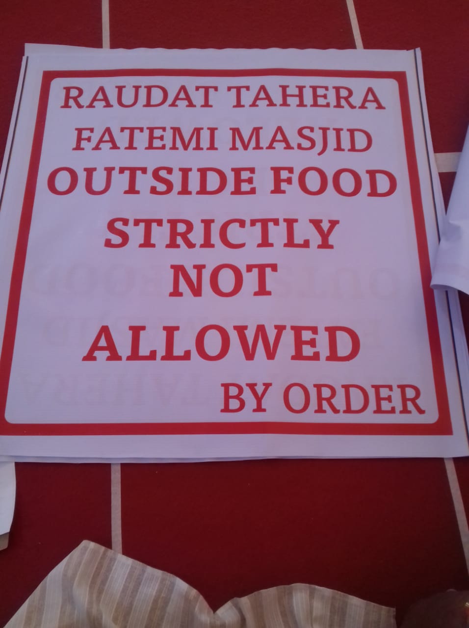 Mumbai na tamaam mumineen ne ta’keed si elan karva ma avec hey ke Huzurala TUS na FARMAAN mutabiq IFTAAR chhe je ma faqat KHAJOOR ,Biscuit,PAANI ane CHA/DOODH le. Ehna siva bija koi bhi khava piva ni chizo Masjid ya Markaz ma andar lavi nai sakai. Isha il Aakherat ni namaaz baad sagla niyaz na jaman ma hazir thai. Sagla aa amar ma yaari aape. Wassalam