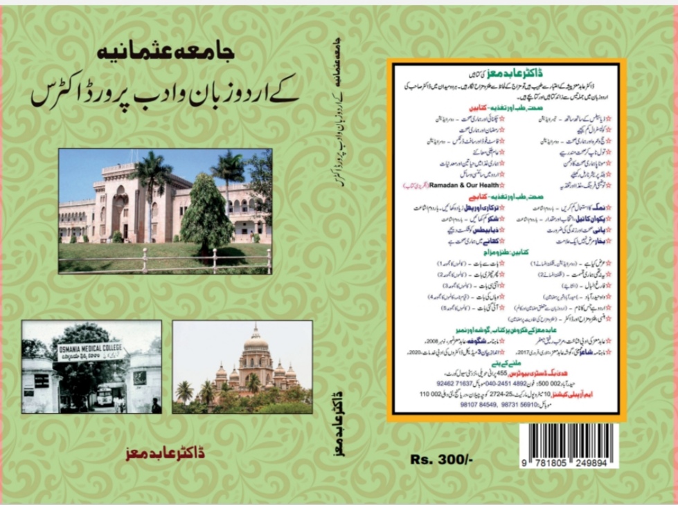 میرے سامنے ایک تازہ ترین کتاب ’’جامعہ عثمانیہ کے اردو زبان و ادب پرور ڈاکٹر ‘‘ہے ۔جو کسی ایک ادارے اوراس سے وابستگی رکھنے والے اردو کے پرستاروں کے حوالے سے لکھی گئی ہے۔اس کتاب کا اصل مقصد عثمانیہ یونیورسٹی سے ایم بی بی ایس سند یافتہ ڈاکٹروں کی اردو دوستی ،اوران کی ادبی خدمات کو منظر عام پر لانا ہے ،جنہوں نے اپنی معالجانہ مصروفیات کے باوجود گیسوئے اردو کی زلفیں سنواری ہیں ، اردو زبان و ادب اور اس کے علمی سرمائے میں اضافہ کیا ہے ۔ان ڈاکٹروں میں کچھ تو وہ ہیں جنہوں نے شروعاتی دور میں اردو زبان میں اپنی میڈیکل تعلیم حاصل کی ہے اور کچھ وہ ہیں جنہوں نے بعد کے ادوار میں انگریزی زبان میں تعلیم حاصل کی مگر اردو کی محبت نے انہیں اپنا اسیر بنا لیا ،جس سے وہ باہر نہ نکل سکے ۔اس کتاب میں ایسے دلچسپ مضامین اور خاکے شامل ہیں جو ذہن و دل کو اس حسین دور میں لے جاتے ہیں ،جہاں ہم اپنی زبان کو زمانے اور کاروبار زندگی سے ہم آہنگ پاتے ہیں۔اس کتاب کو ایک عثمانین یعنی عثمانیہ میڈیکل کالج کے فارغ التحصیل ڈاکٹر عابد معز صاحب نے تحریر کیا ہے،جو کہ طبیب ہونے کے ساتھ ساتھ مشہور و معروف مزاح نگار،اور سائنس نگار بھی ہیں،جن کی دونوں اصناف میں بالترتیب۱۱ اور ۲۲کافی کتابیں شائع ہوکر مقبول ہوچکی ہیں ۔