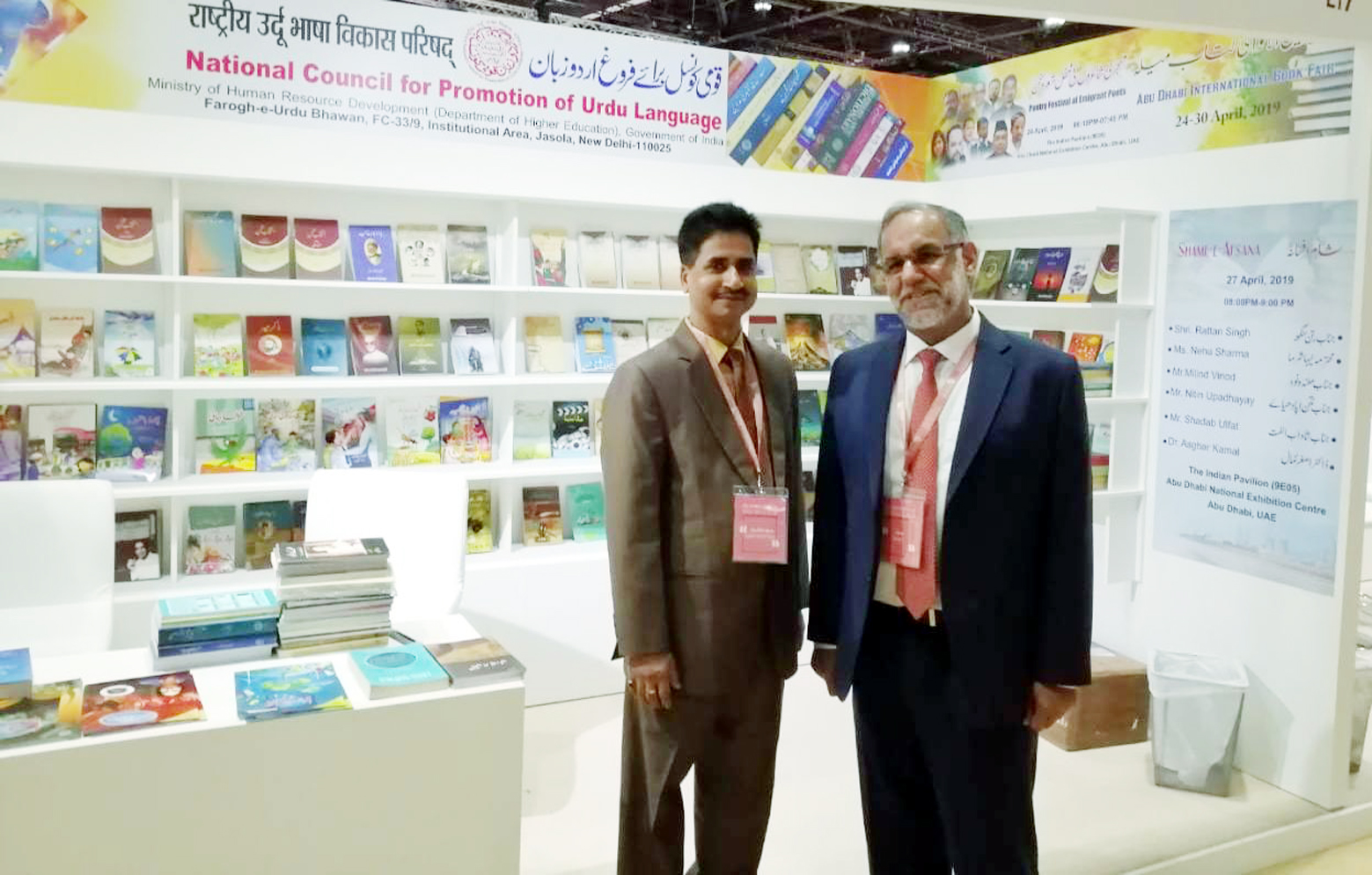 ابو ظہبی : متحدہ عرب امارات کے دارالحکومت ابو ظہبی میں 24- 30؍اپریل 2019 انٹرنیشنل کتاب میلے کا انعقاد کیا گیا ہے ۔ اس کتاب میلے کا باضابطہ افتتاح متحدہ عرب امارات کے صدر محمد بن زائد النہیان اور متحدہ امارات میں ہندوستان کے سفیر نودیپ سنگھ سوری نے مشترکہ طور پر کیا ۔ اس موقع پرثقافت اور سیاحت کے انڈر سکریٹری شیخ سعید گوباش نے شمع روشن کر کے بھارت پویلوین کا افتتاح کیا ۔ ان کے ساتھ ہندوستانی سفیر ، این بی ٹی کے چیئرمین و ڈائریکٹر اور قومی اردو کونسل کے ڈائریکٹر ڈاکٹر شیخ عقیل احمد بھی موجود تھے ۔ نودیپ سنگھ سوری نے قومی اردو کونسل کے اسٹال کا خصوصی جائزہ لیا ۔ انھوں نے میڈیا سے روبرو ہوتے ہوئے کہا کہ اردو دنیا کی ایک ایسی زبان ہے جس میں جذبات و احساسات کی ترجمانی کی بڑی گنجائش ہے ۔ یہ زبان اپنی شیرینی اور مٹھاس کی وجہ سے پوری دنیا میں عزت و وقار کی نگاہ سے دیکھی جاتی ہے ۔ یہ صرف زبان ہی نہیں بلکہ صحیح معنوں میں ہندوستان کی مشترکہ تہذیب کی ترجمان بھی ہے ۔