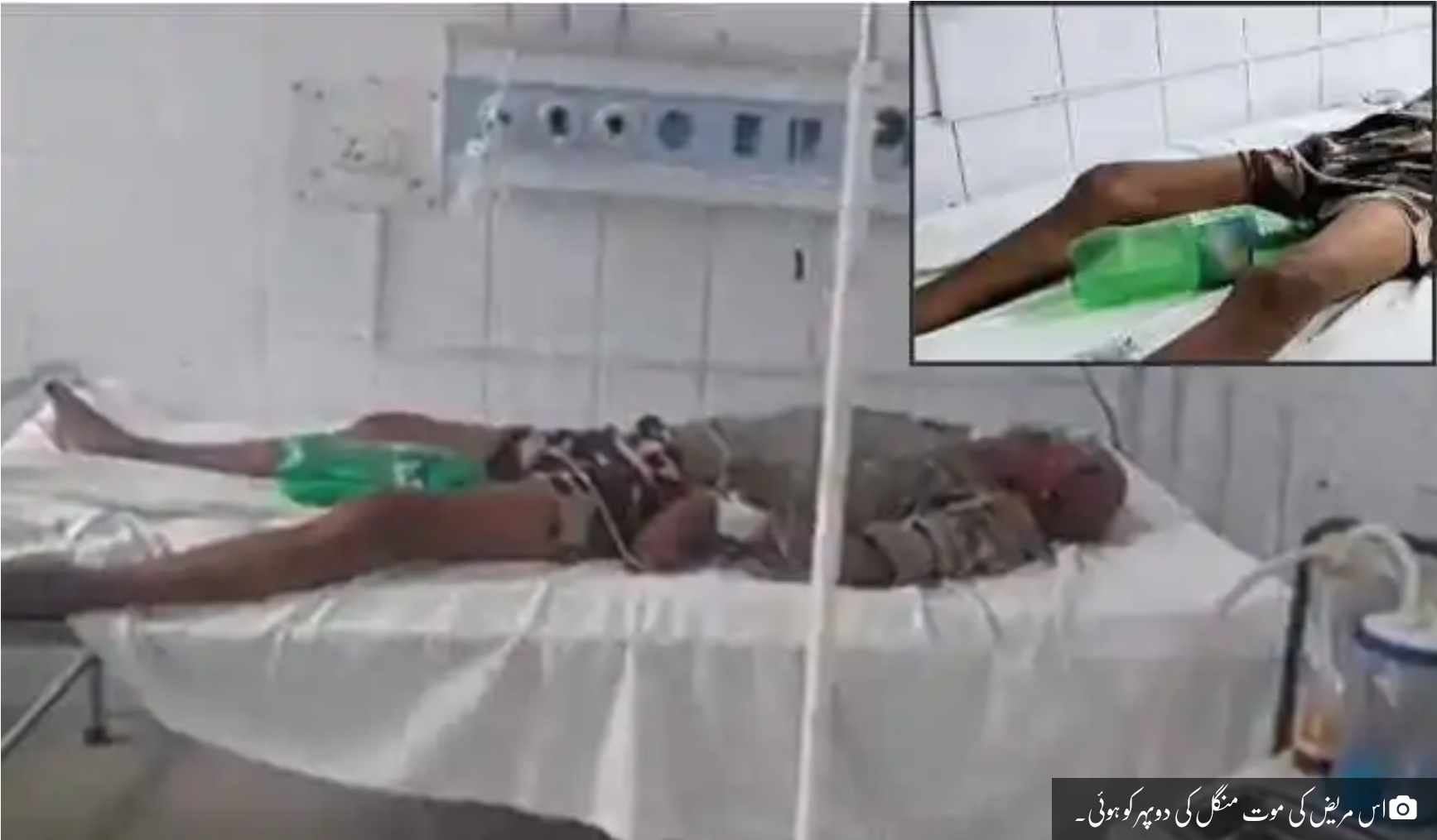 مریض ساری رات بستر پر لیٹا رہا۔ رات گئے اسپتال کے منیجر کو فون کیا گیا تو انہوں نے فون نہیں اٹھایا۔جب انھیں منگل (8 اگست) کی صبح اس بات کا علم ہوا تو جلدی میں پیشاب کے لیے تھیلیاں اور دیگر ضروری ادویات فراہم کر دی گئیں۔ اس مریض کی موت منگل کی دوپہر کو ہوئی۔